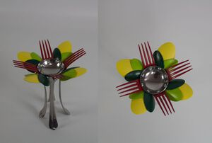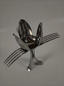 2020Kaarsenstaandaard van gebruikte lepels en vorken