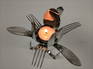 Kaarsenstandaards van hergebruikte lepels en vorken