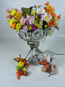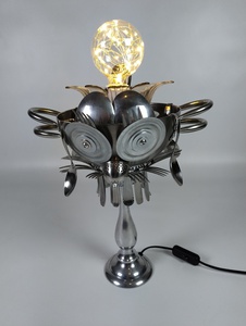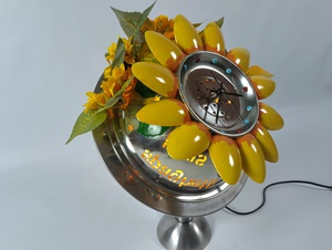 2024Klok in de vorm van een zonnebloem. Het is tegelijkertijd ook een schemerlamp.